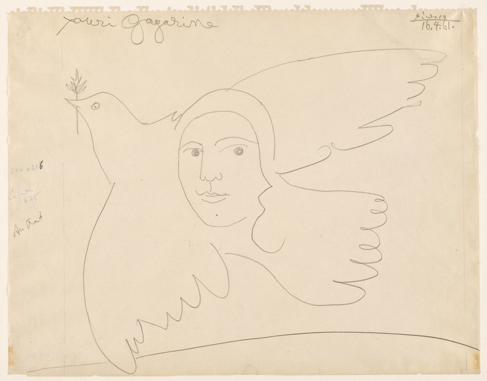 Copié dans le presse-papier :Hommage à Youri Gagarine - Pablo Picasso - 16 avril 1961 - https://cep.museepicassoparis.fr/explorer/hommage-youri-gagarine-mp1531