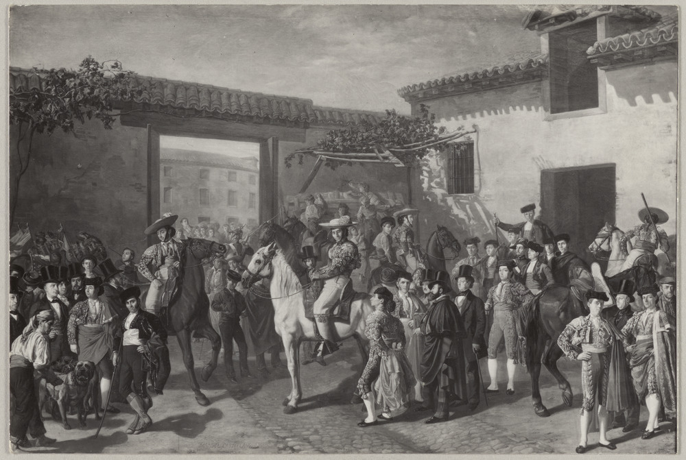Huile "Patio de la cuadra de caballos de la plaza de toros, antes de una corrida" de Manuel Blas Rodríguez de la Parra Castellano, musée du Prado, Madrid