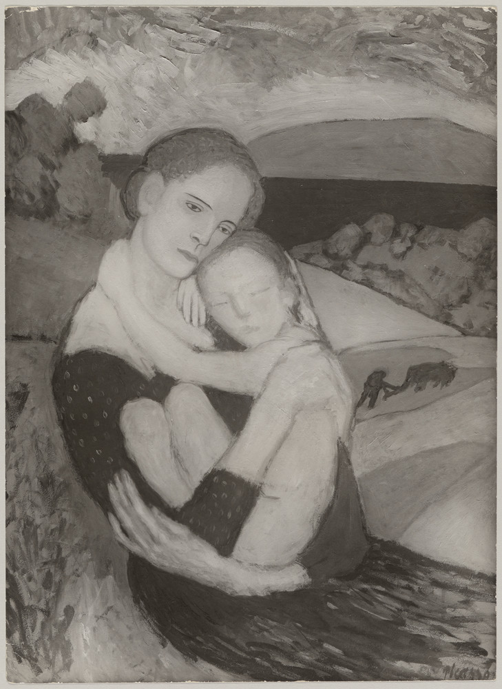 Huile sur bois "Mère et enfant", 1901