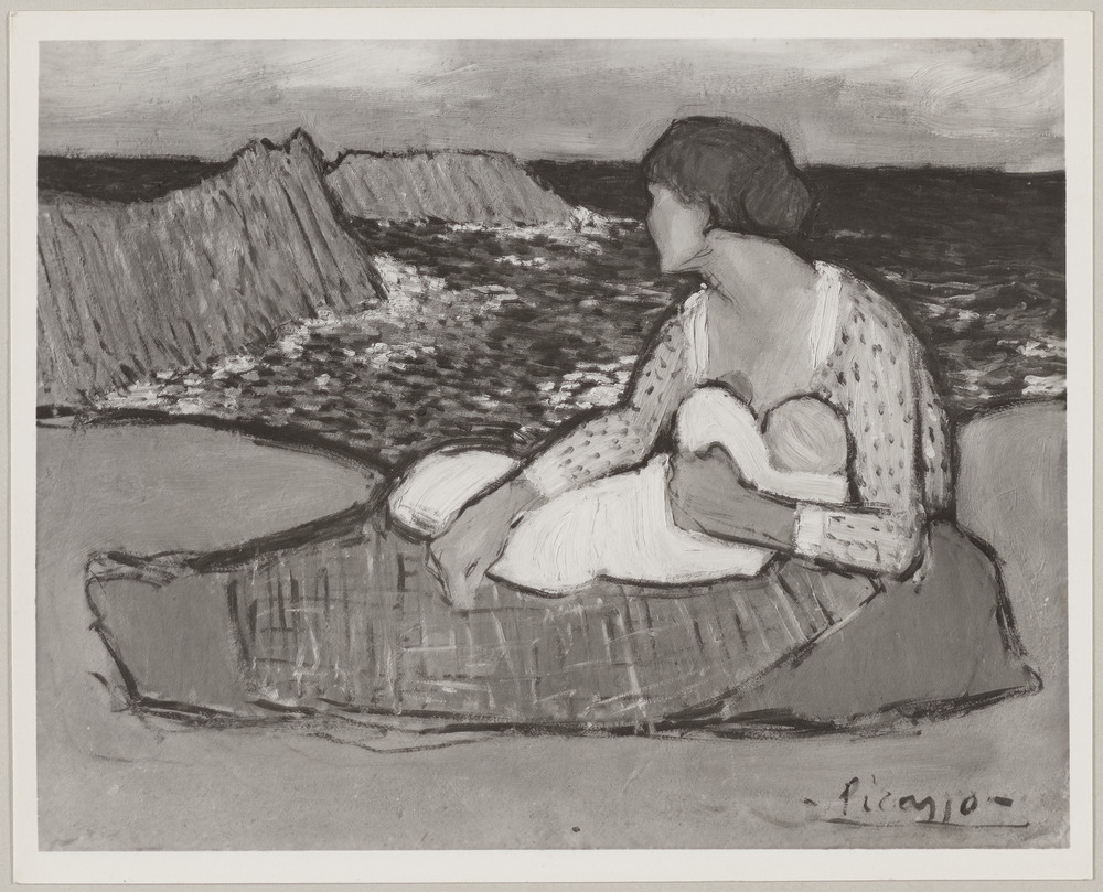 Huile sur carton, "Mère et enfant à la mer", [1901]