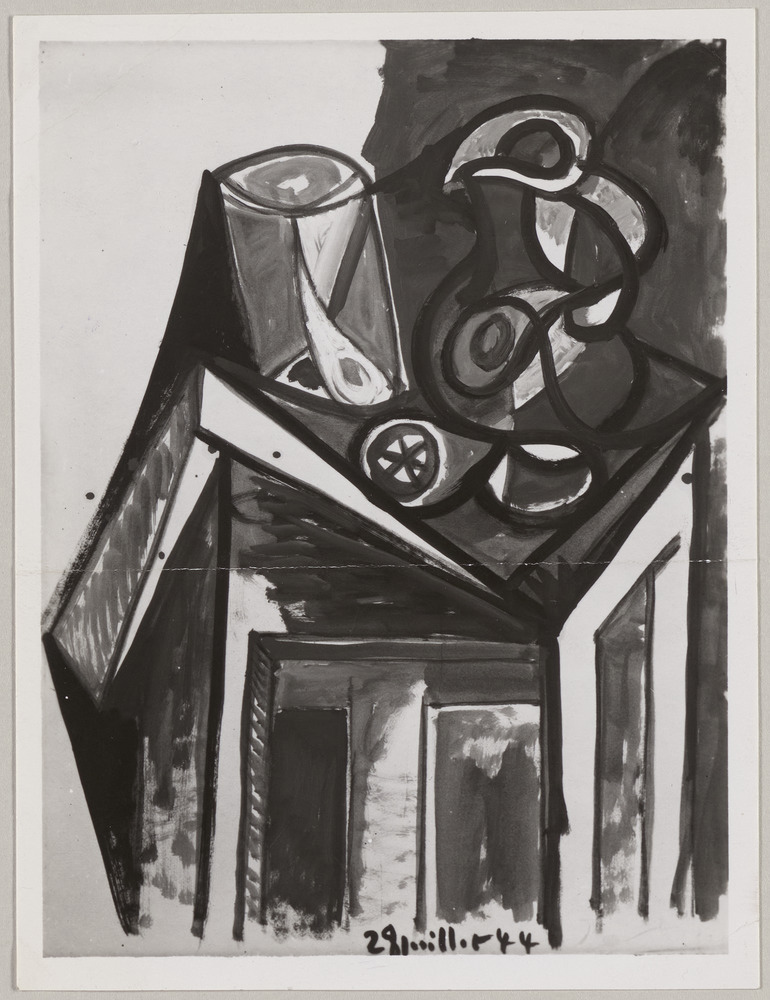 Copié dans le presse-papier :Huile sur papier "Verre et pichet", 28 juillet 1944 - s.d. - https://cep.museepicassoparis.fr/explorer/huile-sur-papier-verre-et-pichet-28-juillet-1944-apph12093