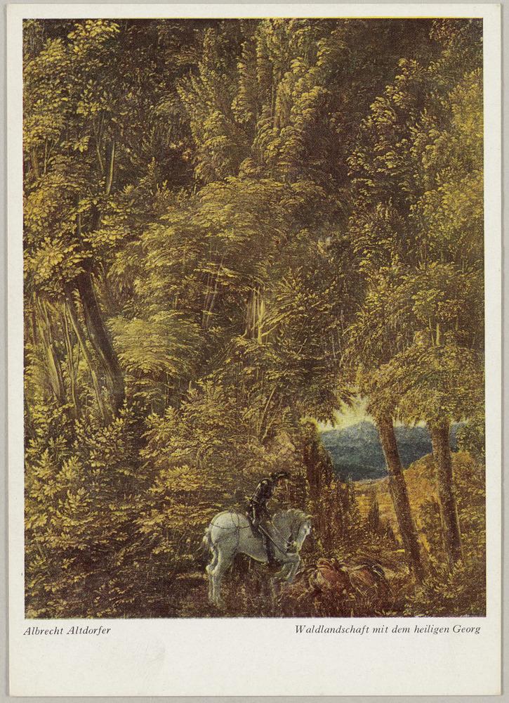 Huile sur parchemin "Coin de Forêt avec Saint-Georges combattant le dragon" d'Albrecht Altdorfer, Alte Pinakothek de Munich
