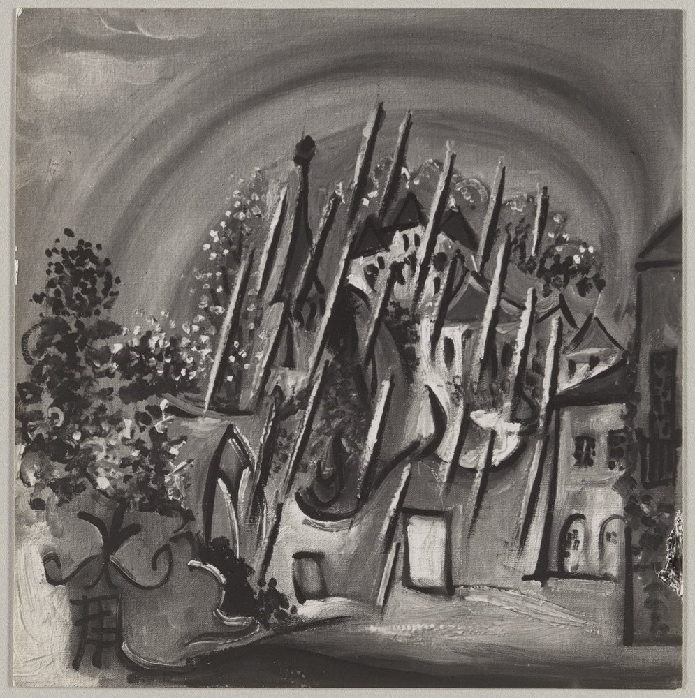 Huile sur toile "Boisgeloup sous la pluie et l'arc en ciel" de 1931, atelier de Boisgeloup, Gisors, ou de la rue de la Boétie, Paris, en 1934