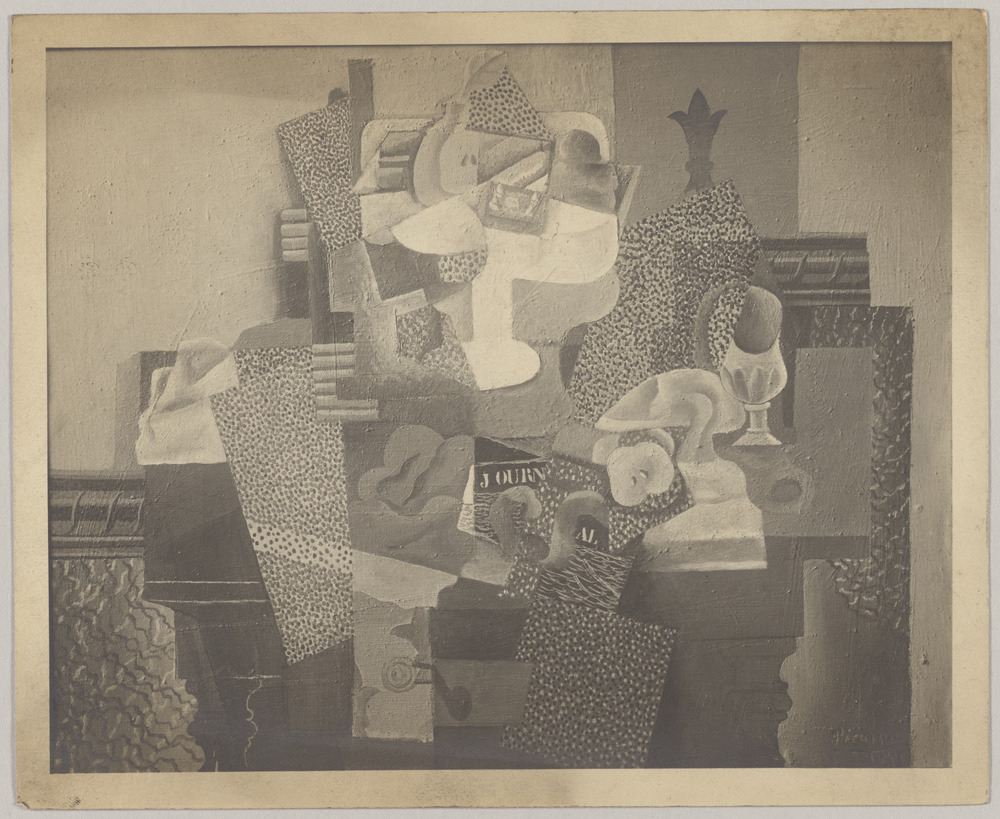 Huile sur toile, "Compotier et verre", Paris, 1914-1915