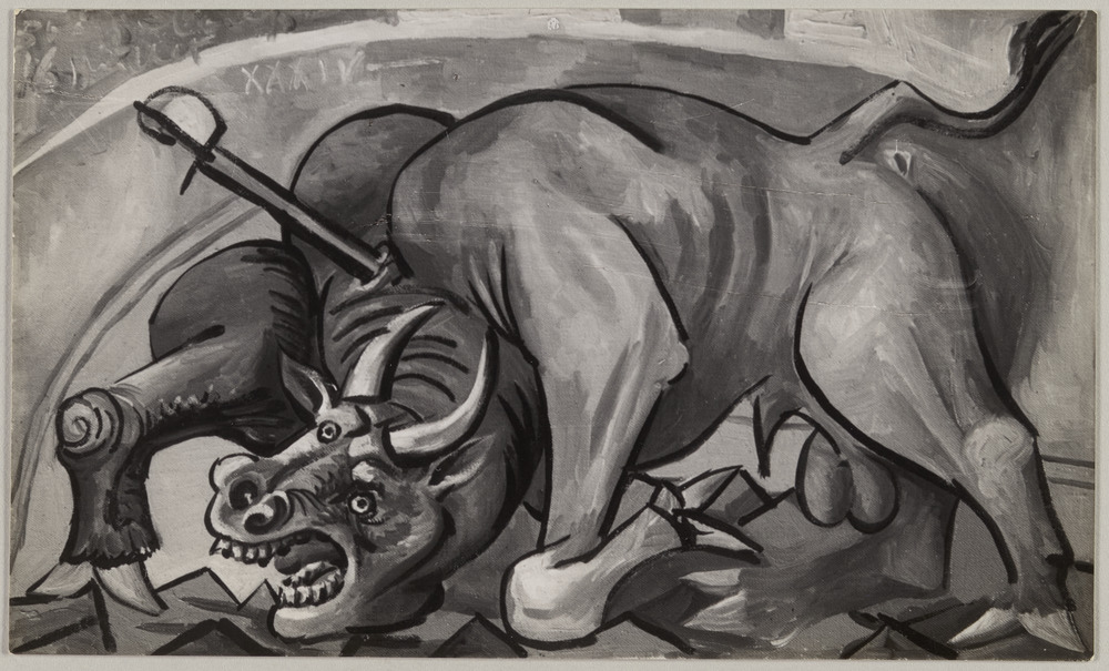 Huile sur toile "Course de taureaux", Boisgeloup, du 16 juillet 1934, atelier de Boisgeloup, Gisors, ou de la rue de la Boétie, Paris, en 1934