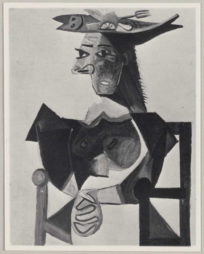 Copié dans le presse-papier :Huile sur toile "Femme assise au chapeau en forme de poisson", 19 avril 1942 - s.d. - https://cep.museepicassoparis.fr/explorer/huile-sur-toile-femme-assise-au-chapeau-en-forme-de-poisson-19-avril-1942-apph12078