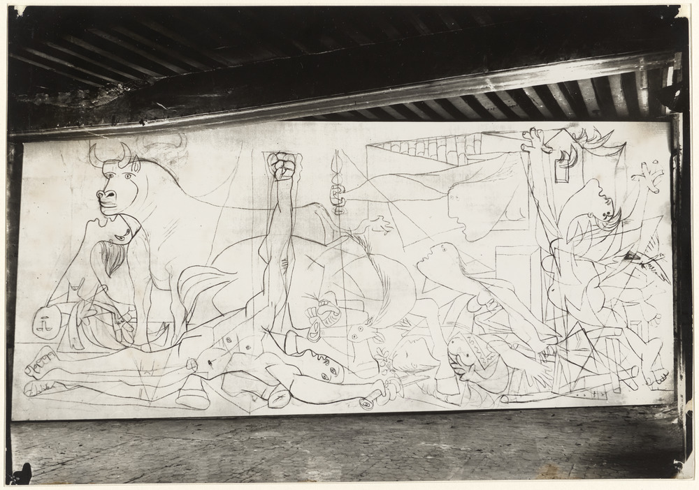 Huile sur toile "Guernica" en cours d'exécution, état I bis, dans l'atelier des Grands-Augustins, Paris, en mai 1937