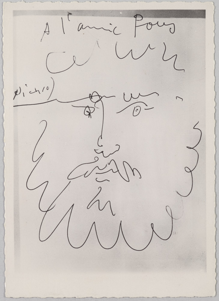 Dédicace sur le dessin : "A l'ami Pous [signé] Picasso"