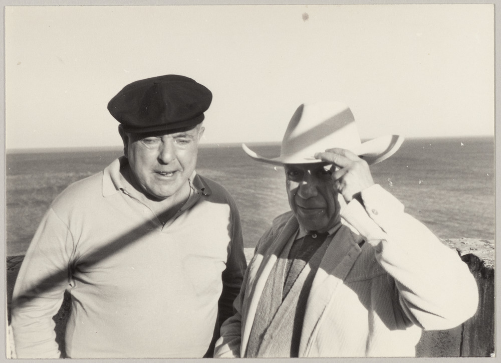 Jacques Prévert et Pablo Picasso au bord de la mer, [Antibes], circa 1957-60