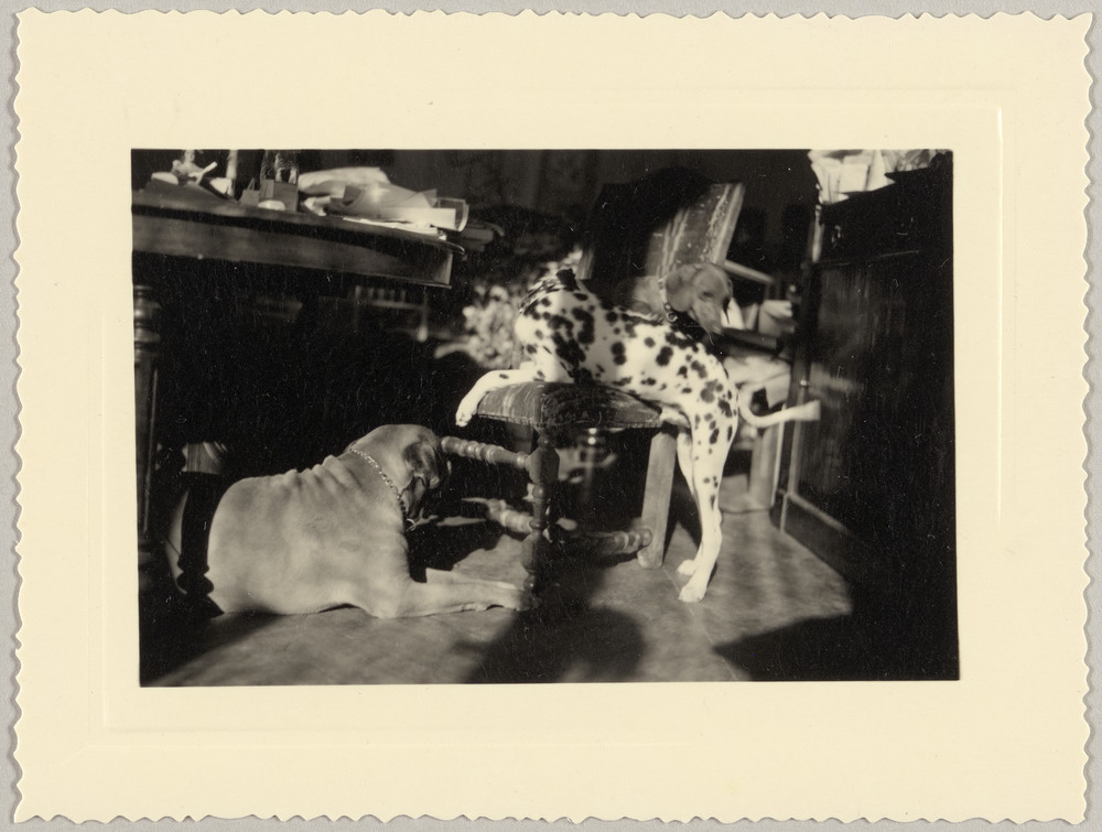 Jan le boxer, Lump le teckel et Perro le dalmatien à La Californie, Cannes, [vers 1957-61]
