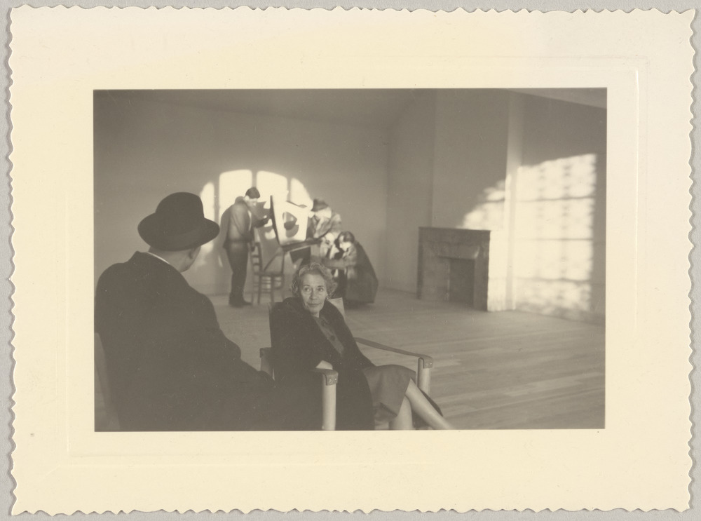 Jane Kootz au premier plan, Pablo Picasso et deux hommes installant "La Chaise"…