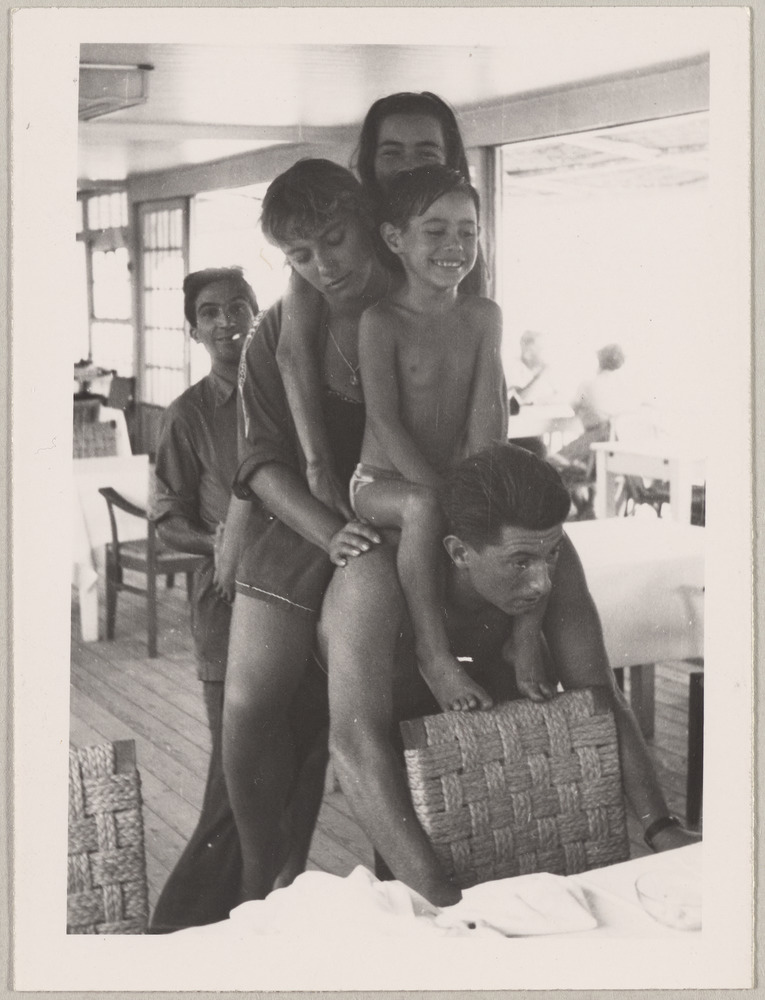 Javier Vilató Ruiz, Maya Picasso avec Caroline Lemort, Claude et Paul Picasso au restaurant Chez Tetou, Golfe-Juan, été 1954