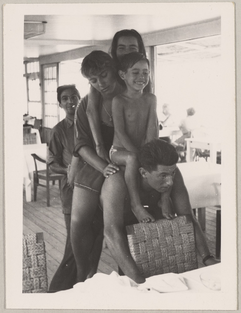 Javier Vilató Ruiz, Maya Picasso avec Caroline Lemort, Claude et Paul Picasso au restaurant Chez Tetou, Golfe-Juan, été 1954