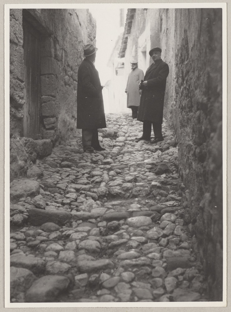 Joan Gaspar, Jaime Sabartés et Vidal Ventosa dans une rue de Horta de Sant Joan…