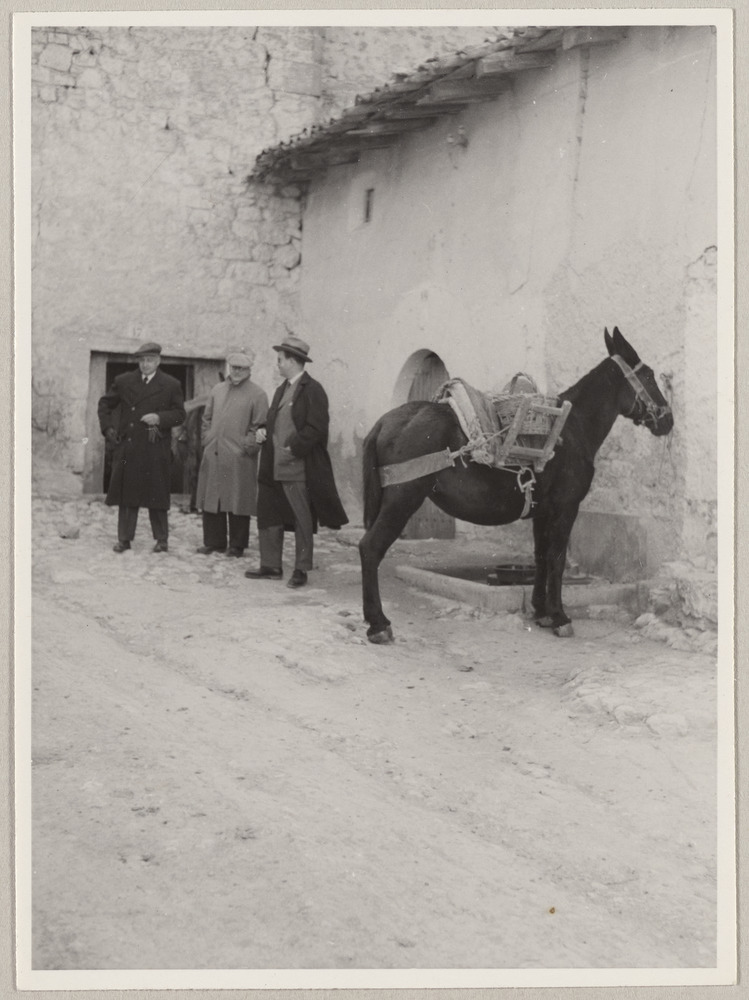 Joan Vidal Ventosa, Jaime Sabartés, Joan Gaspar près d'un mulet à Horta de Sant…