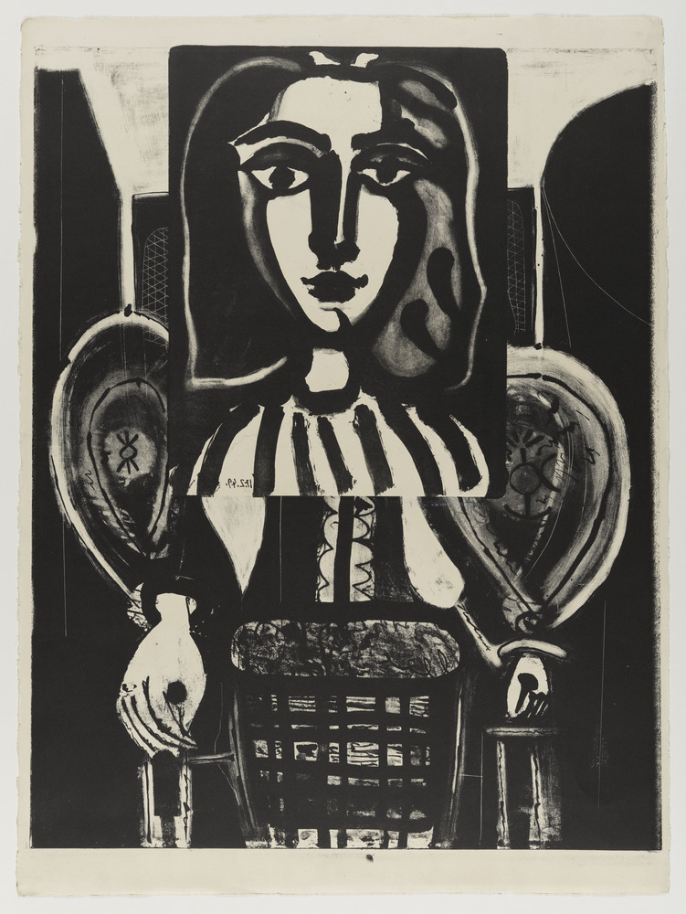 Lithographie obtenue par le tirage du 2ème état du report de la "Femme au fauteuil n°4" dans lequel a été réservée l'espace de la "Jeune femme" du 17 février 1949, tirée en second