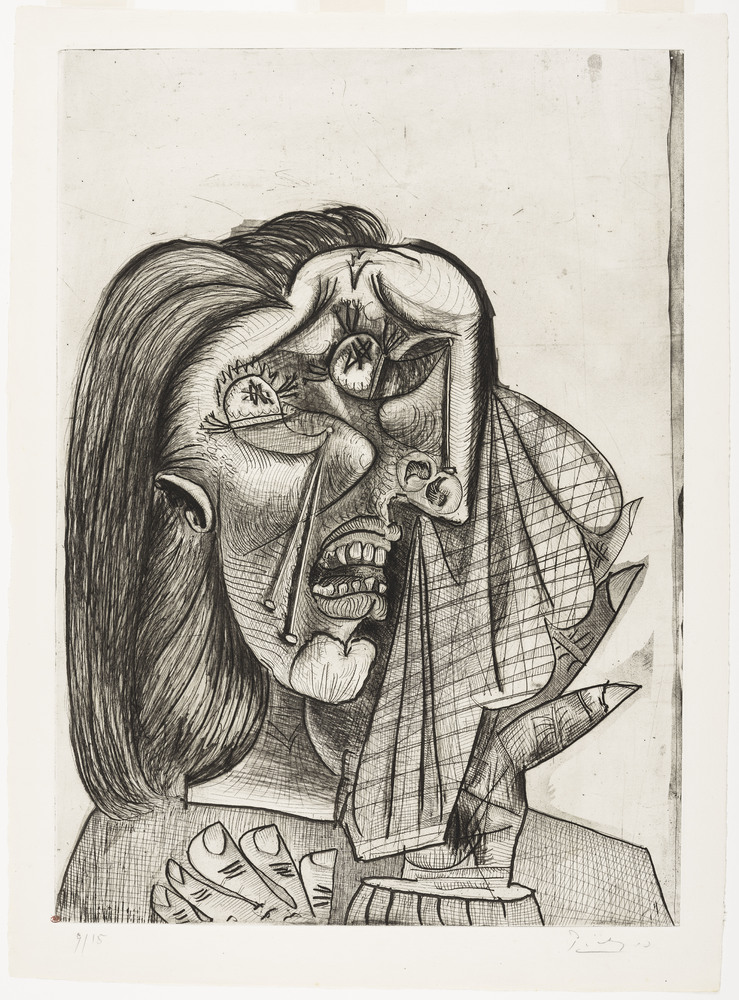 Copié dans le presse-papier :La Femme qui pleure. VII - Pablo Picasso - 1er juillet 1937 - https://cep.museepicassoparis.fr/explorer/la-femme-qui-pleure-vii-mp2748