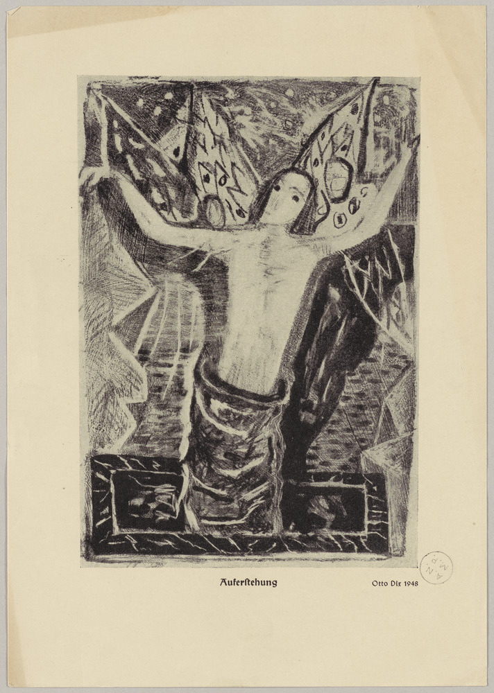 Annotation tapuscrite au recto, centrée en bas : "Auferstehung Otto Dix 1948"