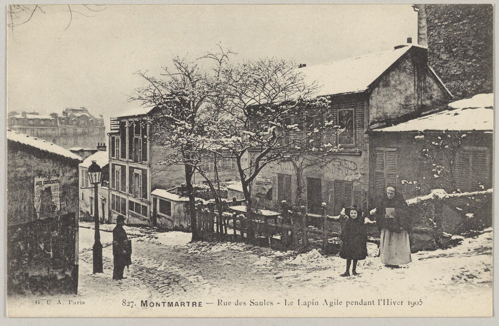 Le cabaret du Lapin Agile, rue des Saules à Montmartre, Paris, pendant l'hiver 1905