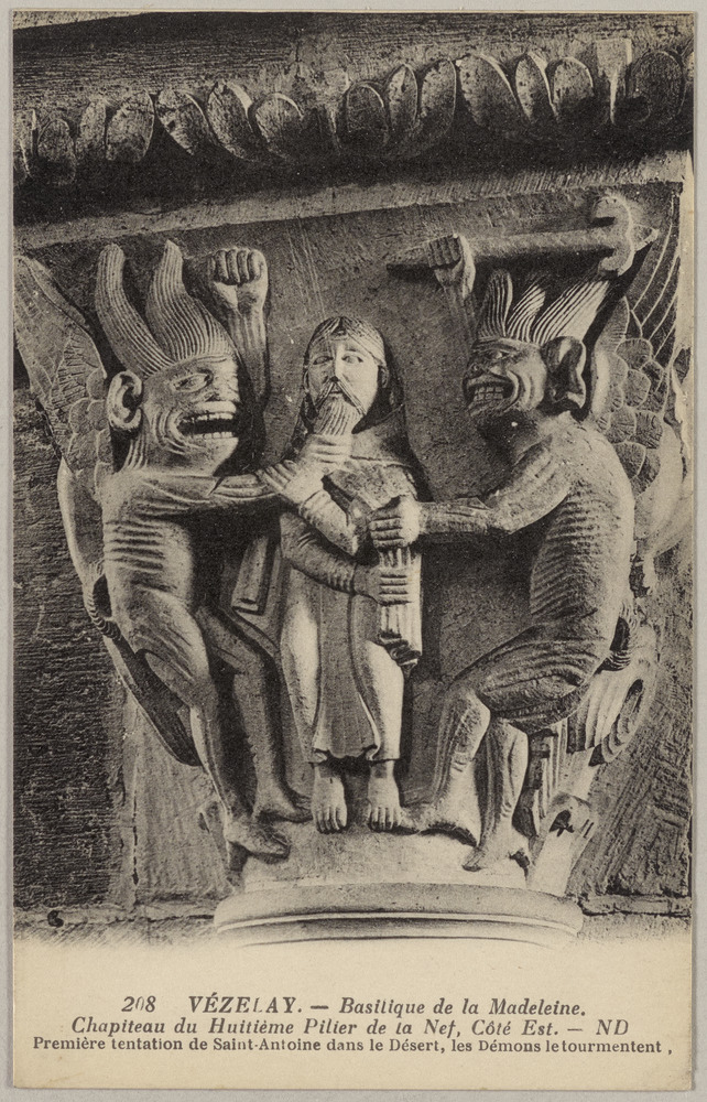 Le chapiteau de la première tentation de Saint-Antoine dans le désert, basilique Sainte-Marie-Madeleine de Vézélay