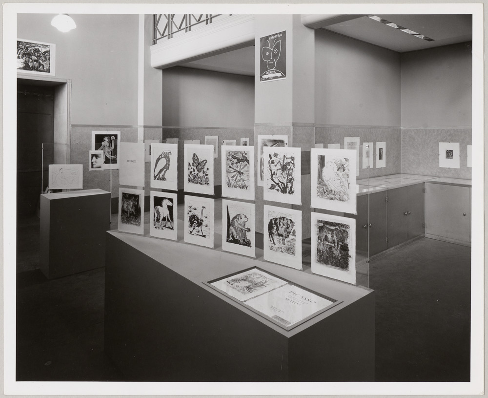 Annotation au dos, en haut, à gauche : "Picasso Show. 1958. Print Gallery. plexiglass Bookcase"