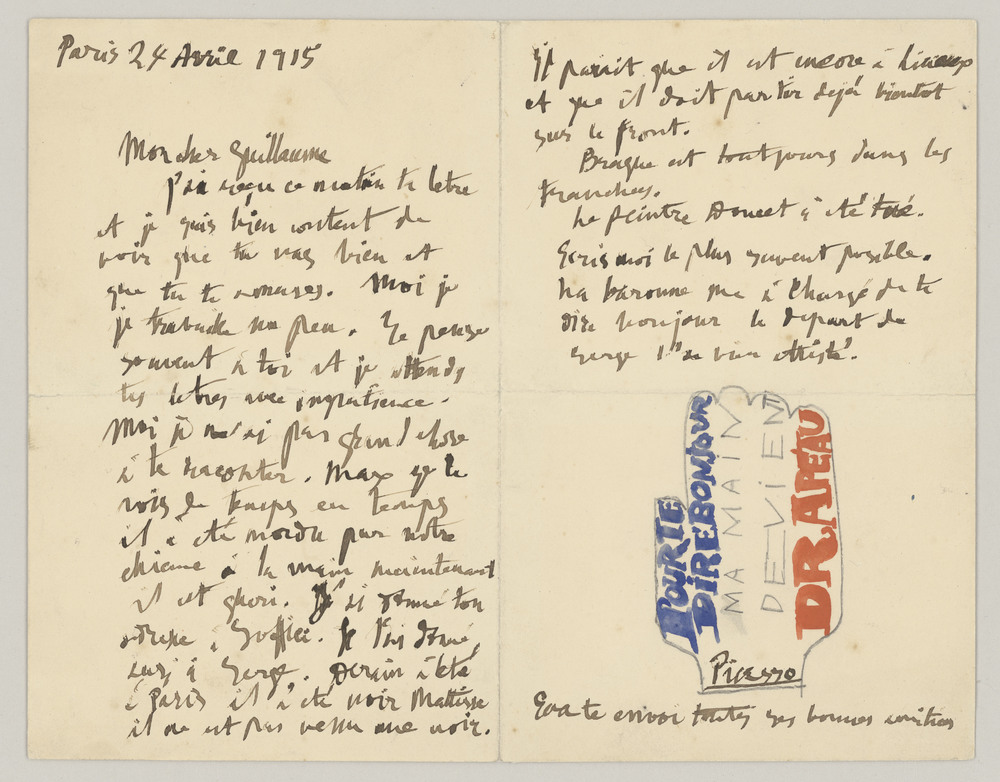 Copié dans le presse-papier :Lettre adressée à Guillaume Apollinaire - Pablo Picasso - 24 avril 1915 - https://cep.museepicassoparis.fr/explorer/lettre-adressee-guillaume-apollinaire-mp2007-1
