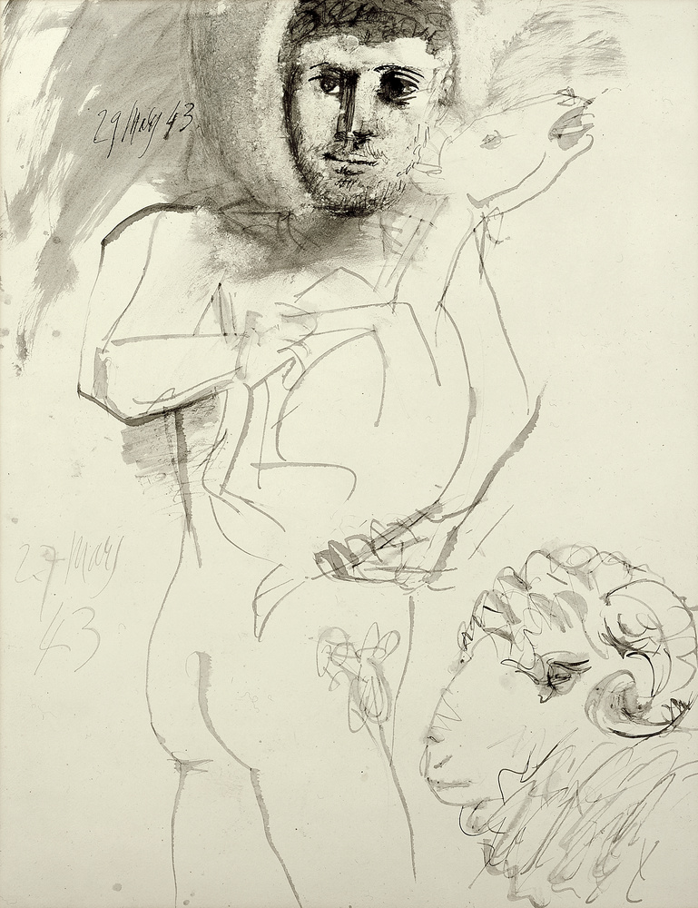Copié dans le presse-papier :L'Homme au mouton - Pablo Picasso - 27 mars 1943 - 29 mars 1943 - https://cep.museepicassoparis.fr/explorer/lhomme-au-mouton-mp1990-75