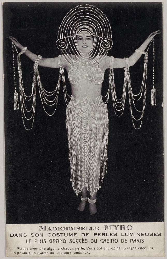 Mademoiselle Myro dans son costume de perles lumineuses au Casino de Paris