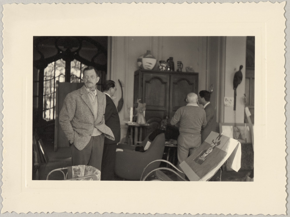 Marcel Duhamel, Lionel Prejger, Pablo Picasso et Miquel Gaspar dans l'atelier…