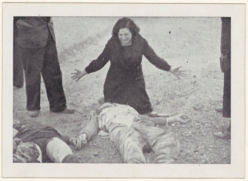 Maria Riu i Esqué pleurant son mari mort Gabriel Pernau i Sans lors du bombardement de Lérida, le 2 novembre 1937