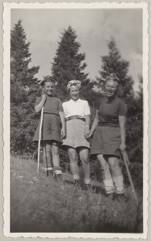 Maya avec sa mère Marie-Thérèse Walter et Mademoiselle Madeleine en randonnée à la montagne, le 15 juillet 1945