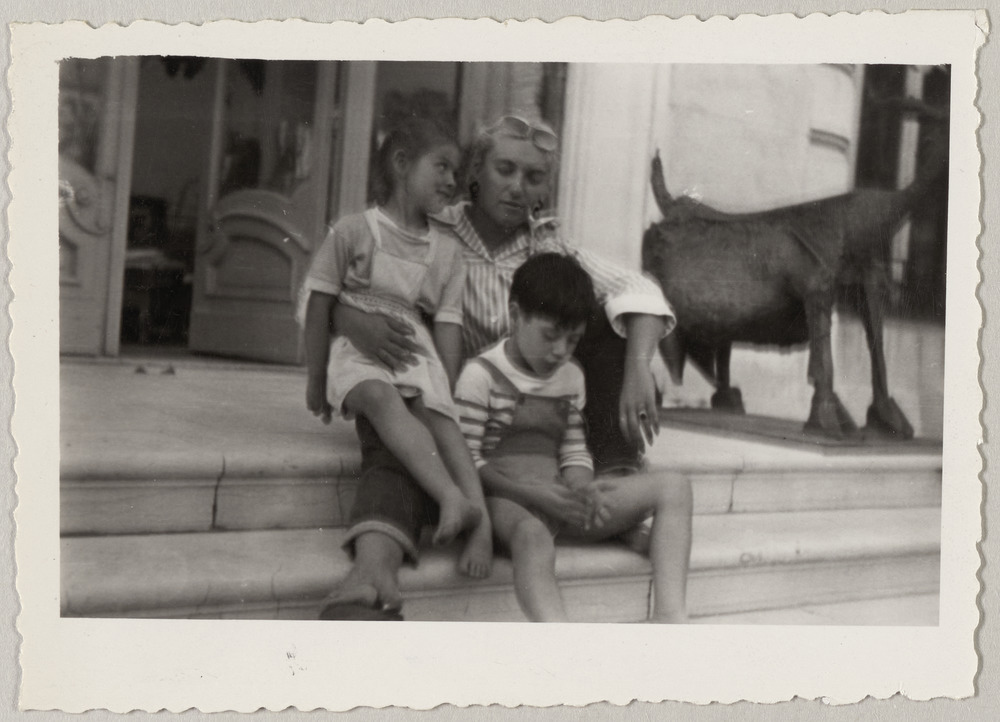 Maya, Paloma et Claude Picasso sur les marches du perron de La Californie, Cannes