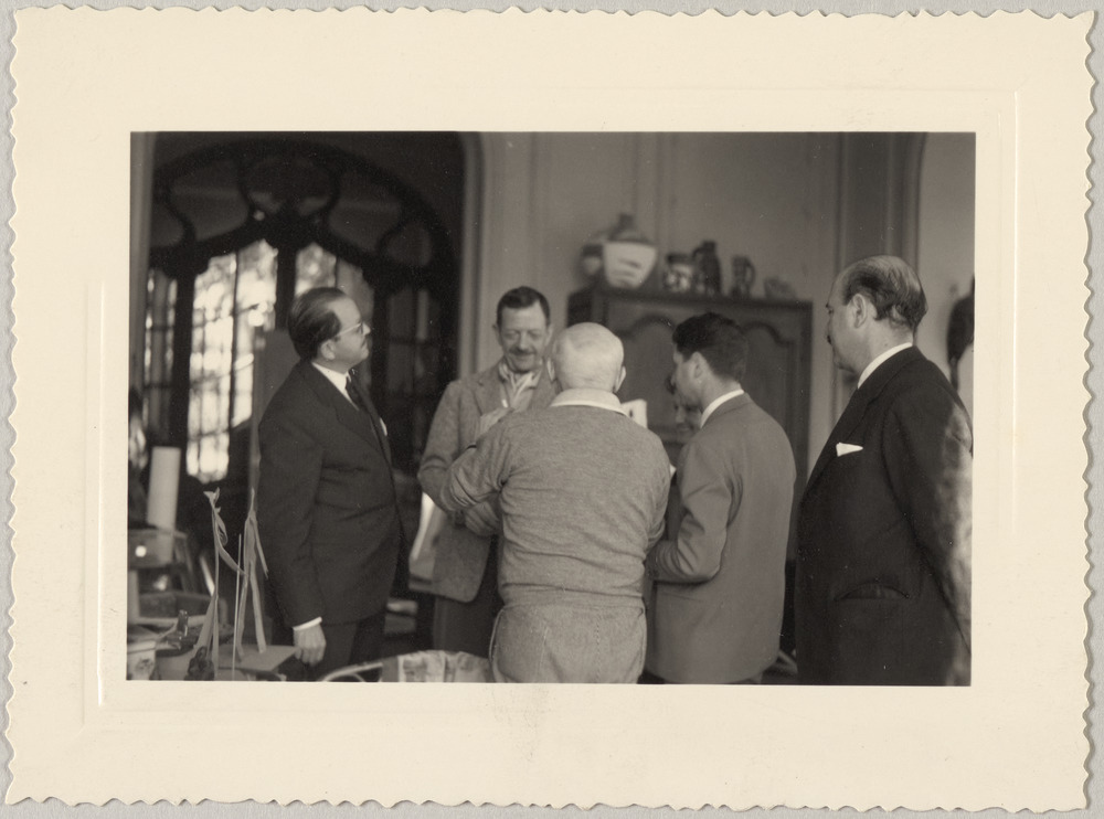 Miquel et Joan Gaspar, Marcel et Germaine Duhamel, Lionel Prejger autour de Pablo Picasso, dans l'atelier de La Californie, Cannes, en 1961