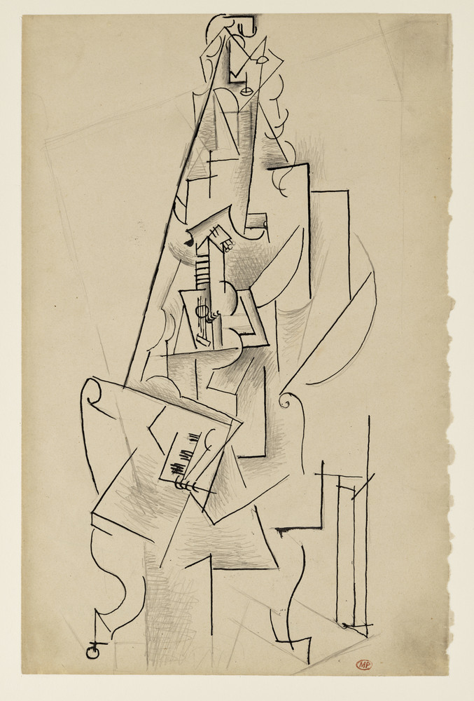 Copié dans le presse-papier :Musicienne assise tenant une partition - Pablo Picasso - printemps 1912 - https://cep.museepicassoparis.fr/explorer/musicienne-assise-tenant-une-partition-mp728