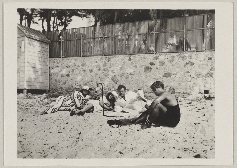 Olga et Pablo Picasso avec un couple d'amis sur la plage de Juan-les-Pins, 1924-1926