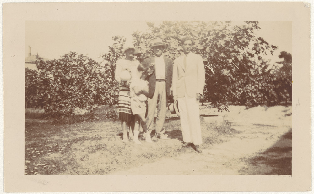 Olga, Paul et Pablo Picasso avec Manuel Ángeles Ortiz dans un jardin à Dinard, en été 1928