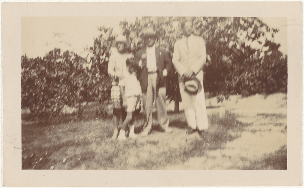 Olga, Paul et Pablo Picasso avec Manuel Ángeles Ortiz dans un jardin à Dinard, en été 1928