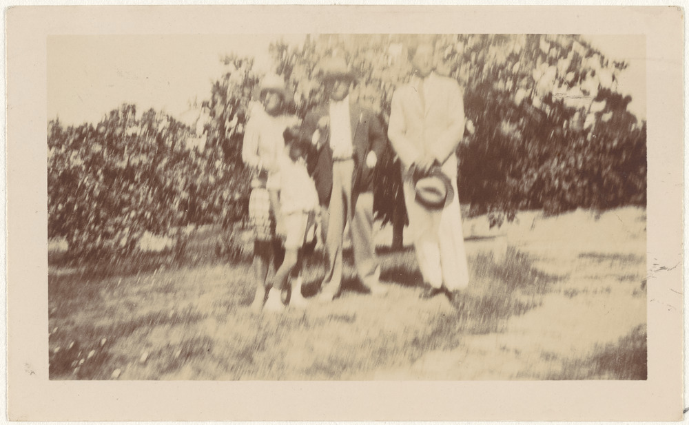 Olga, Paul et Pablo Picasso avec Manuel Ángeles Ortiz dans un jardin à Dinard, en été 1928