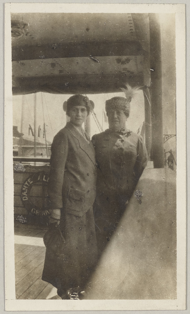 Olga Picasso avec une dame agée sur le pont d'un navire