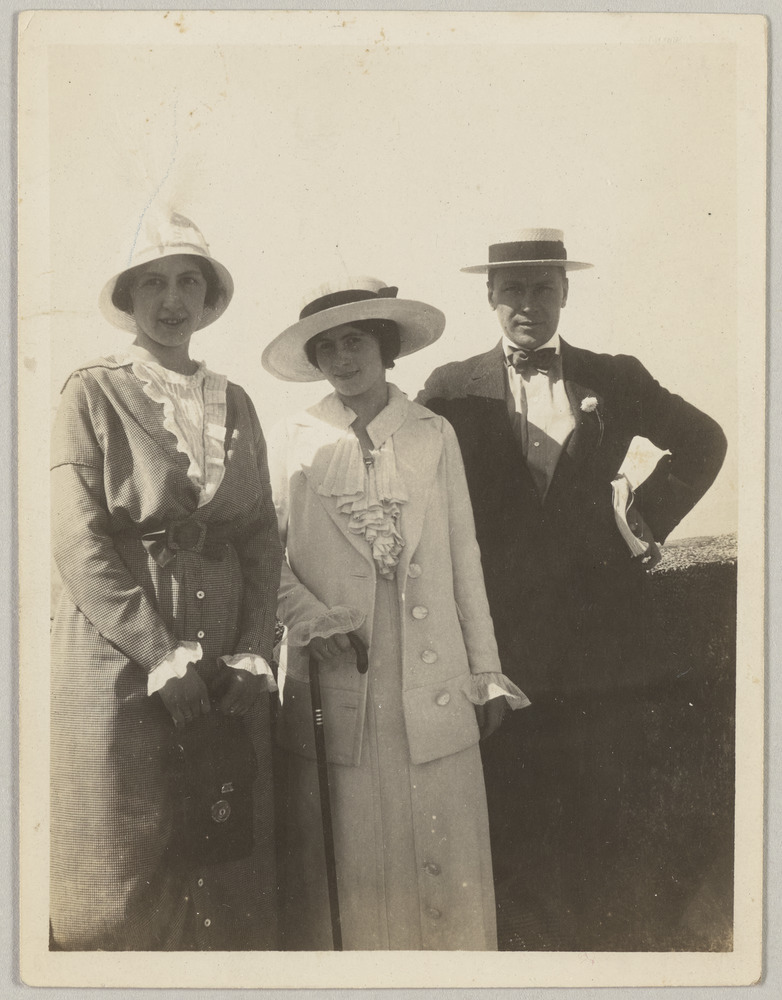 Olga Picasso entre Madeleine et Yvon Helft sur la promenade de Dinard, en 1929