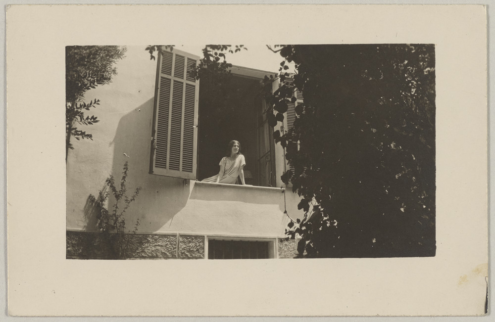 Olga Picasso à la fenêtre de la Villa Les Sables, Juan-Les-Pins, en été 1920