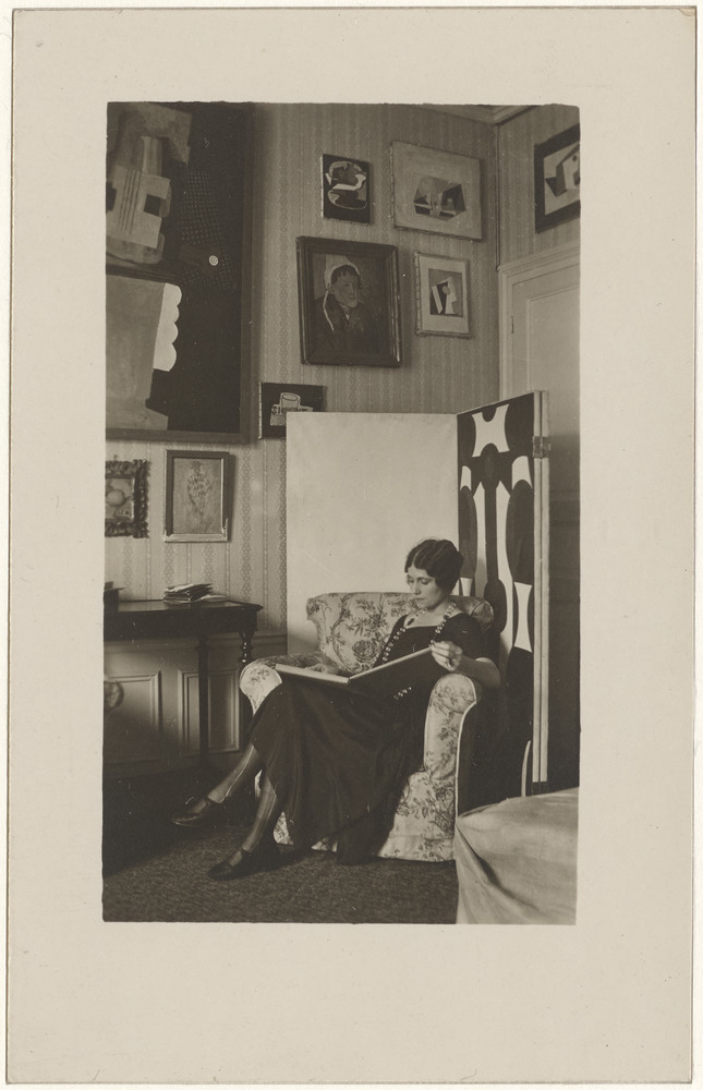 Olga Picasso lisant dans un fauteuil, rue La Boétie, Paris, en 1920