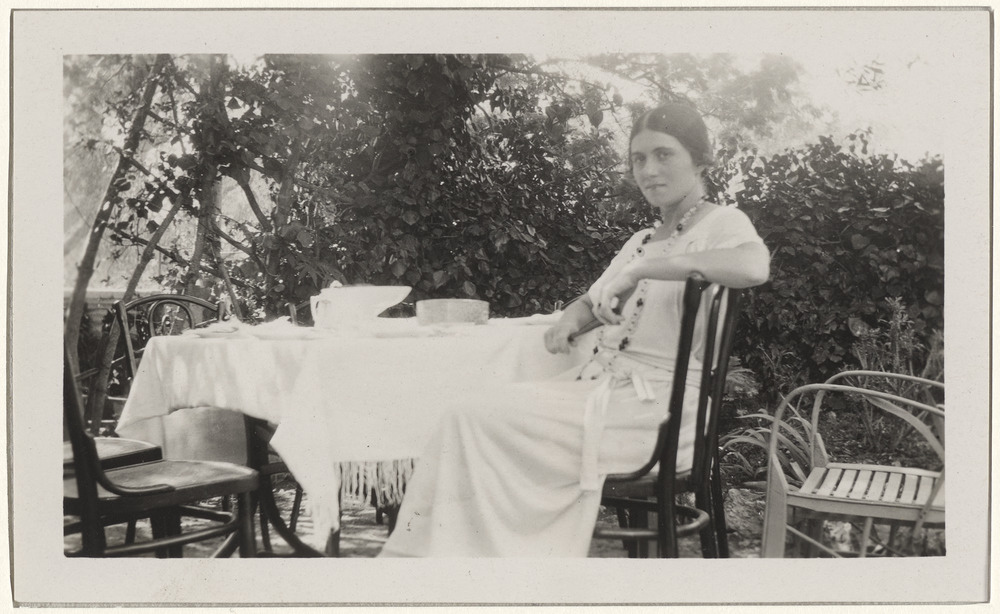 Olga Picasso sur la terrasse de la Villa Les Sables, Juan-les-Pins, en été 1920