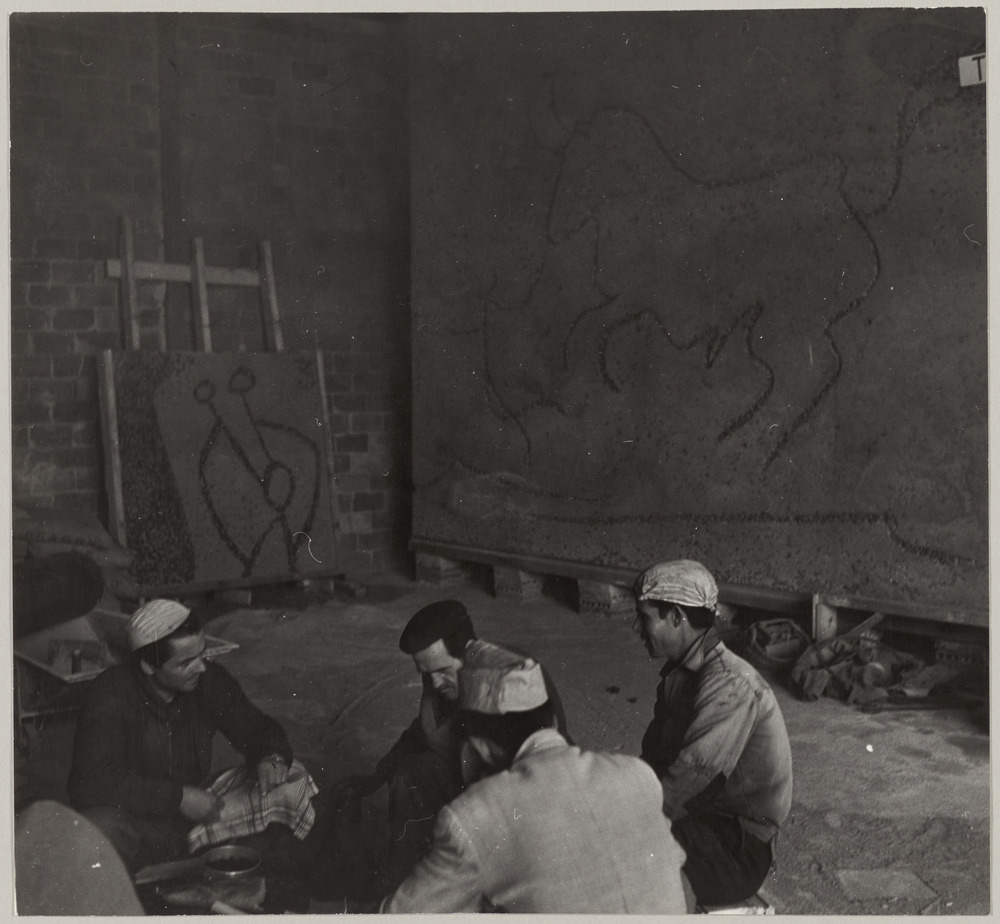 Copié dans le presse-papier :Ouvriers en pause déjeuner à côté des panneaux bétogravées de la façade du… - s.d. - https://cep.museepicassoparis.fr/explorer/ouvriers-en-pause-dejeuner-cote-des-panneaux-betogravees-de-la-facade-du-apph18005