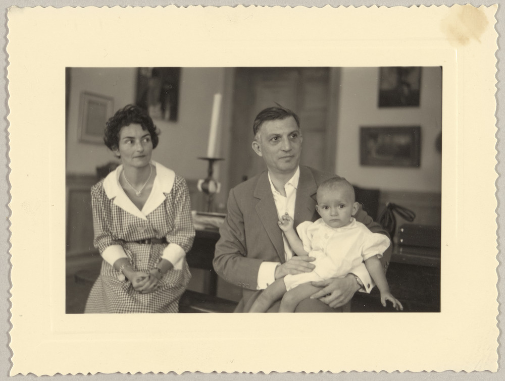 Pablin Vilato avec son fils Pablito sur les genoux et sa femme Marie-Louise à côté, au château de Vauvenargues