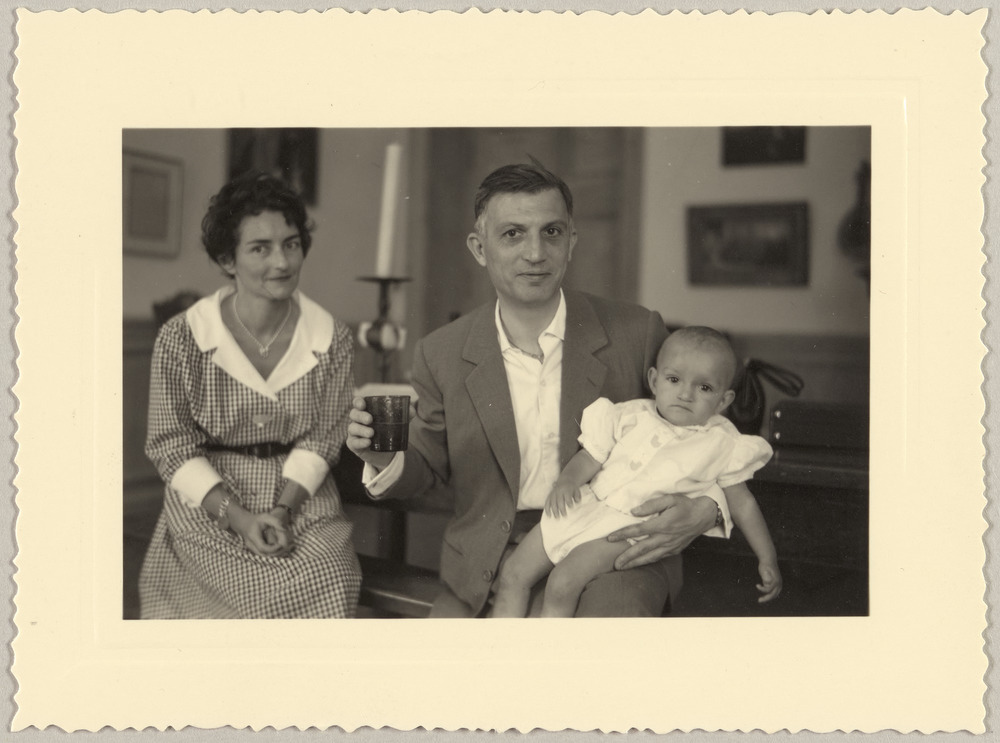 Pablin Vilato avec son fils Pablito sur les genoux et sa femme Marie-Louise à côté, au château de Vauvenargues