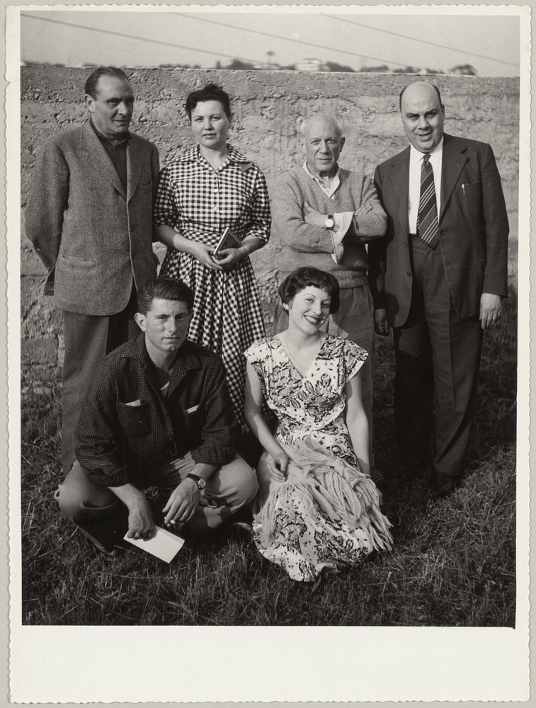 Pablo et Paul Picasso avec des personnes non identifiées à l'atelier du Fournas, Vallauris