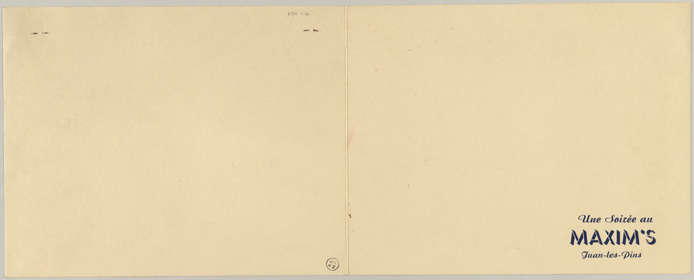 Gaufrage coloré au recto du porte-photo, en bas à droite : "Une soirée au Maxim's Juan-les-Pins"