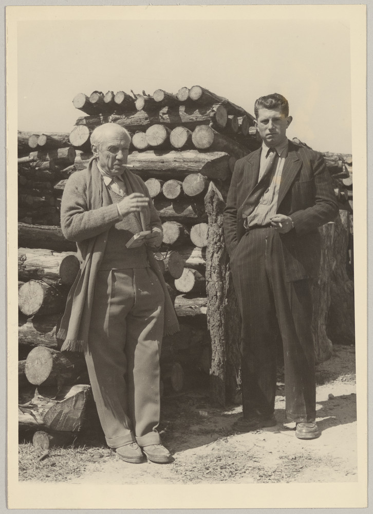 Pablo et Paul Picasso dans la cour de l'atelier de Madoura, Vallauris, entre [1947 et 1953]