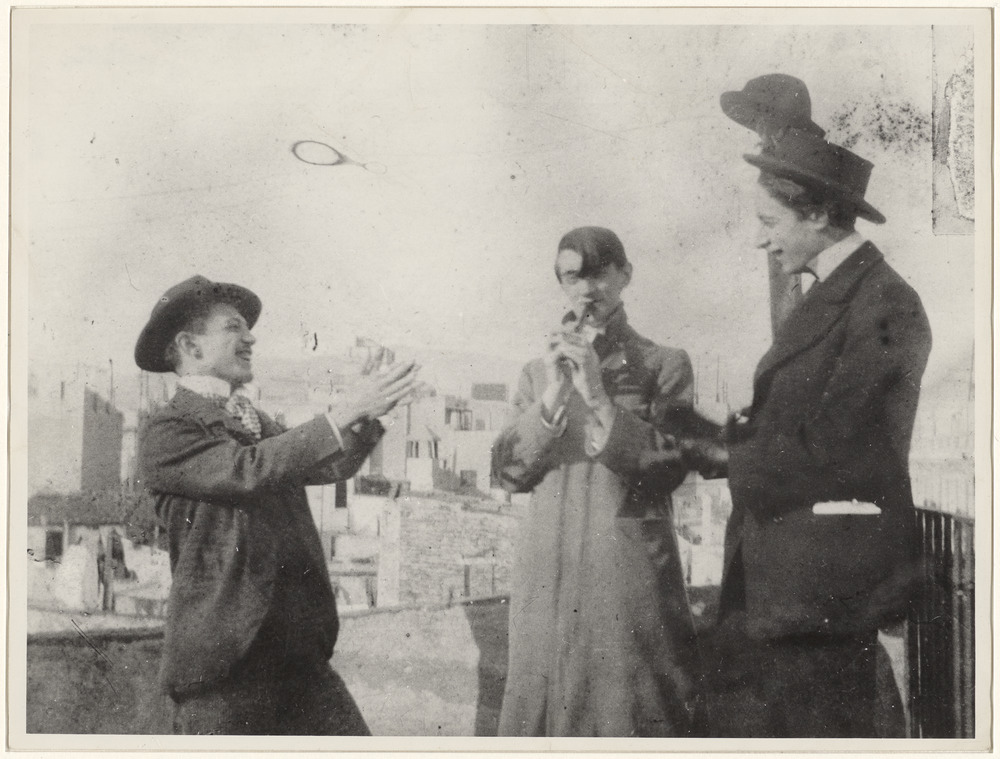 Pablo Picasso, Àngel Fernández de Soto et Carles Casagemas sur la terrasse du 3 rue de la Merced à Barcelone, vers 1900